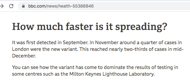 哈佛大學公共衞生學院流行病學家威廉·哈納奇表示,其他國家可能已存在這種變異病毒株,英國之所以成為第一個發現這種病毒的國家,是因為目前英國擁有世界上最先進的新冠病毒基因組監測體系,而許多國家尚未開展這樣的測序工作。