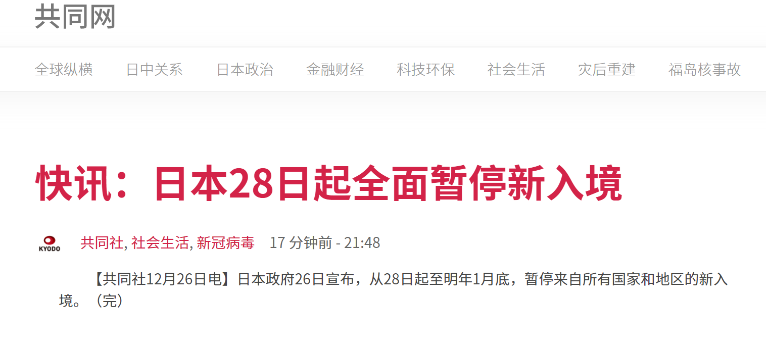 【環球時報-環球網報道 記者 邢曉婧】據日媒報道,日本政府26日宣佈,從當地時間28日0時起至明年1月底,暫停來自所有國家和地區的新入境。這句簡短的消息給外界造成日本“封國”的錯覺,實際上,新政之下仍有大量符合條件的外國人可以入境日本。