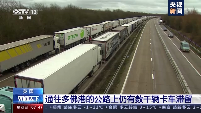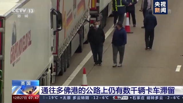 由於英國部分地區近期出現傳染力更強的變異新冠病毒,法國政府20日發佈禁令,從巴黎時間21日零點起暫停來自英國的所有人員入境,包括貨運人員。這一禁令導致原本要回歐洲的貨車無法離開英國,距離歐洲大陸最近的英國港口——多佛港附近公路上排起長龍。據路透社報道,26日,通往多佛港的公路上仍有數千輛卡車滯留。