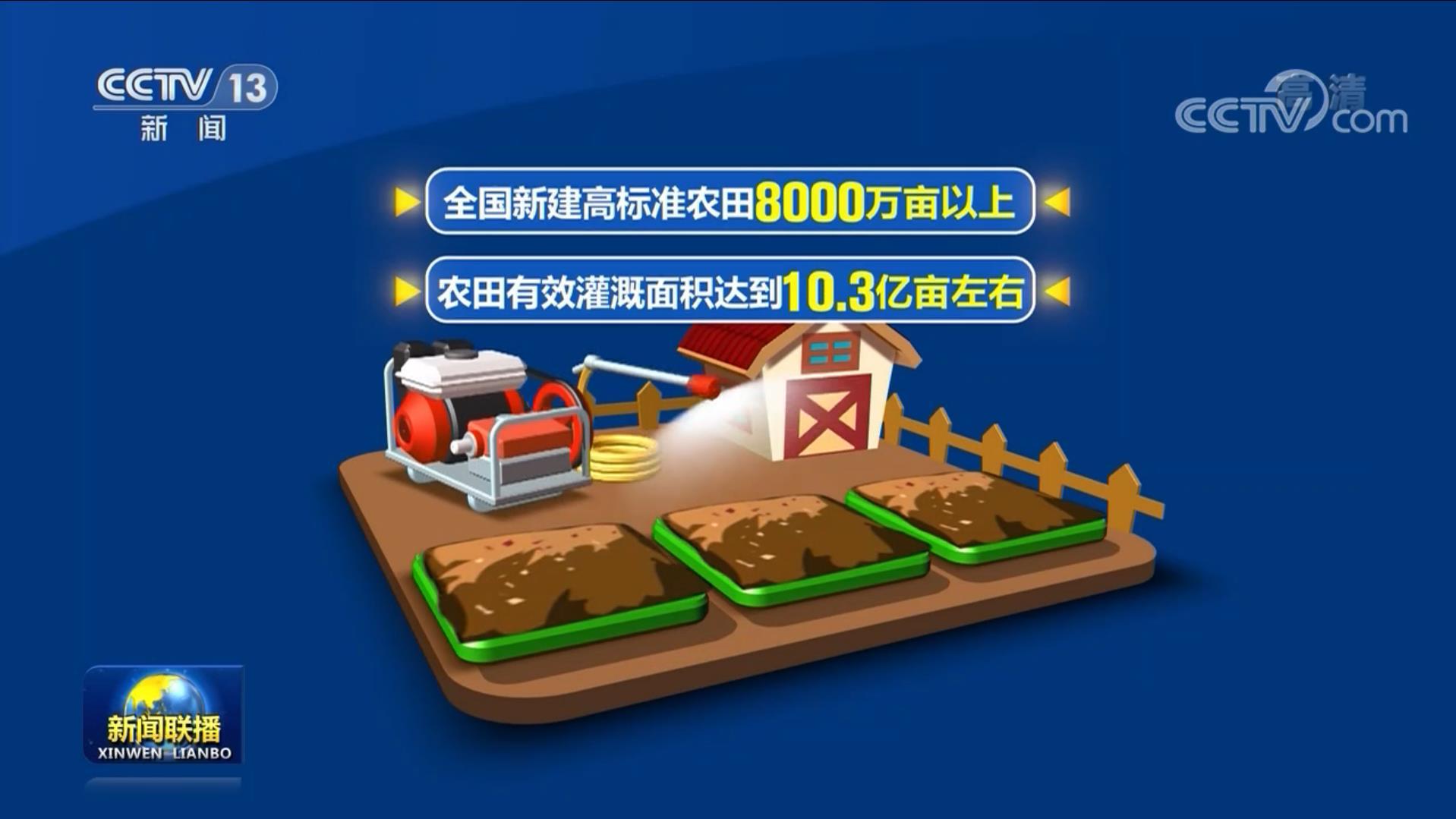 今年,全國新建高標準農田8000萬畝以上;農田有效灌溉面積達到10.3億畝左右;東北黑土地保護性耕作行動啓動,首批試點面積達4606萬畝。