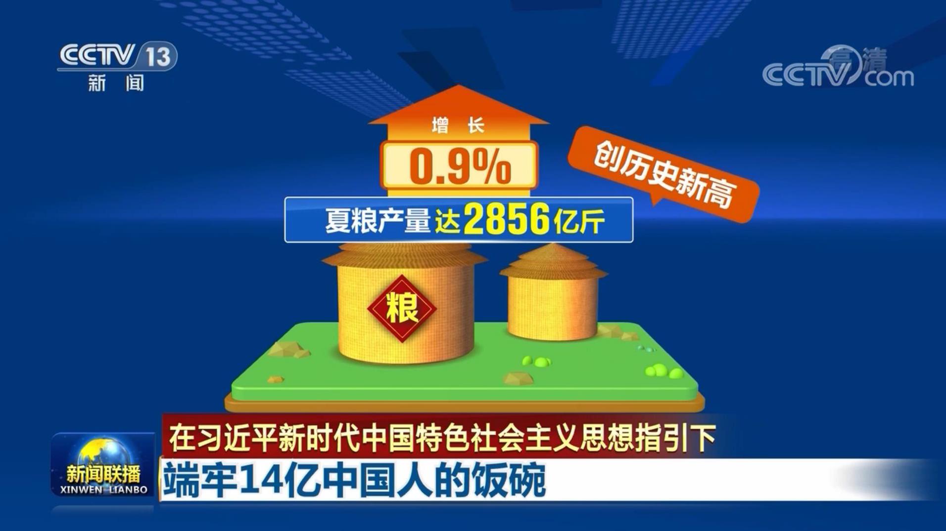 夏糧產量增長0.9%,達2856億斤,創歷史新高。