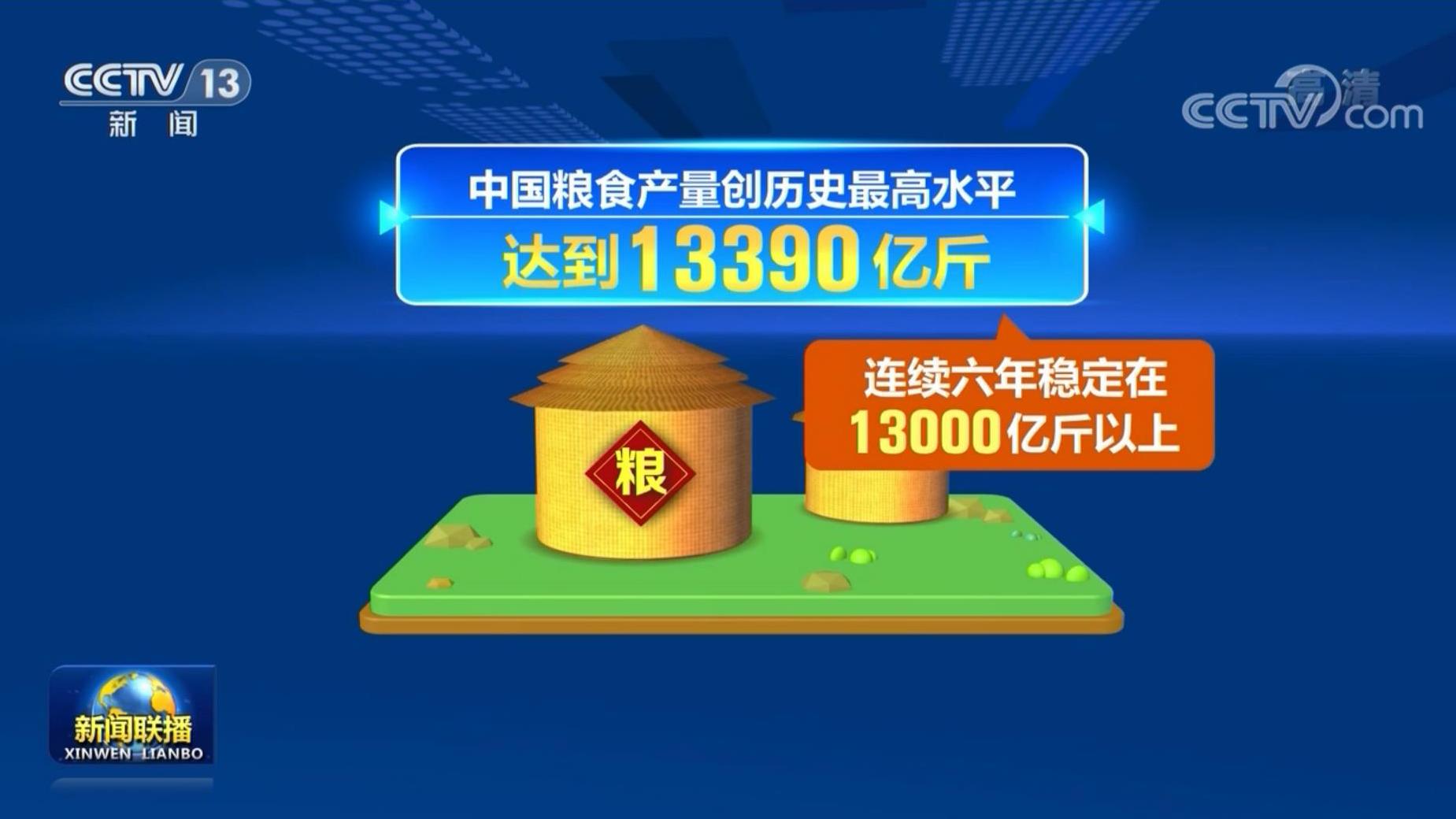 2020年,面對新冠肺炎疫情和不利天氣影響,中國糧食產量創歷史最高水平,達到13390億斤,連續六年穩定在13000億斤以上。