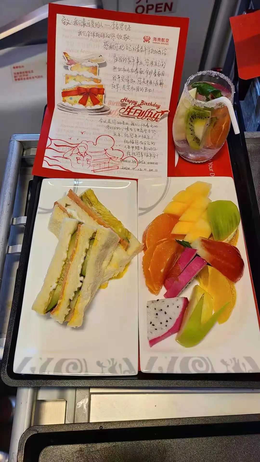 面對空姐送上的這份驚喜