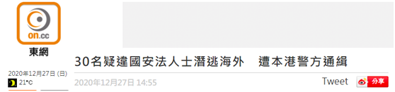 【環球網綜合報道 記者 趙友平】港媒12月27日消息稱,香港警方目前就違反香港國安法逃到海外的亂港分子進行通緝,人數約有30人。
