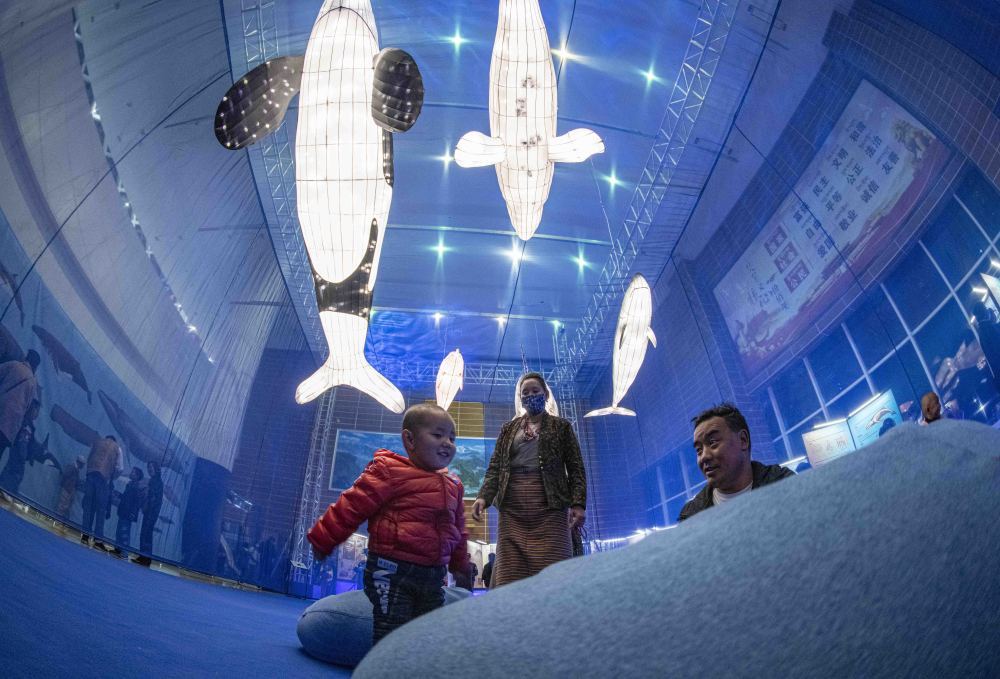 在西藏自治區自然科學博物館,觀眾參觀《鯨奇世界》巡展(2020年10月30日攝)。新華社記者 晉美多吉 攝