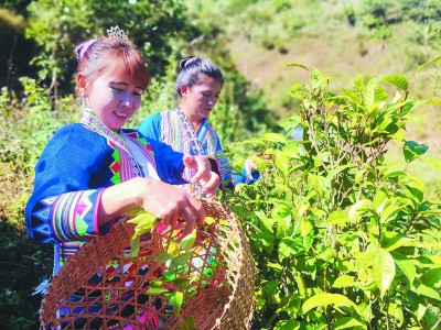 曼班三隊拉祜族婦女在採摘茶葉。光明日報記者 張勇攝