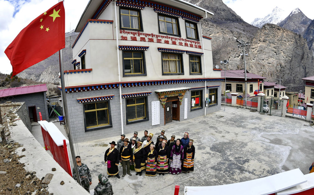 3月20日,西藏林芝市西日卡村村民代表在村委會小廣場舉行升國旗、唱國歌儀式。61年前,五星紅旗在西日卡村冉冉升起,開啓了一個村莊和一面國旗不可割捨的情懷。從此,升國旗成為這個雪域山村不變的傳統。鮮豔的國旗,印記着西日卡村農奴翻身解放的歲月,見證着邊陲村莊日新月異的變遷。新華社記者 張汝鋒 攝