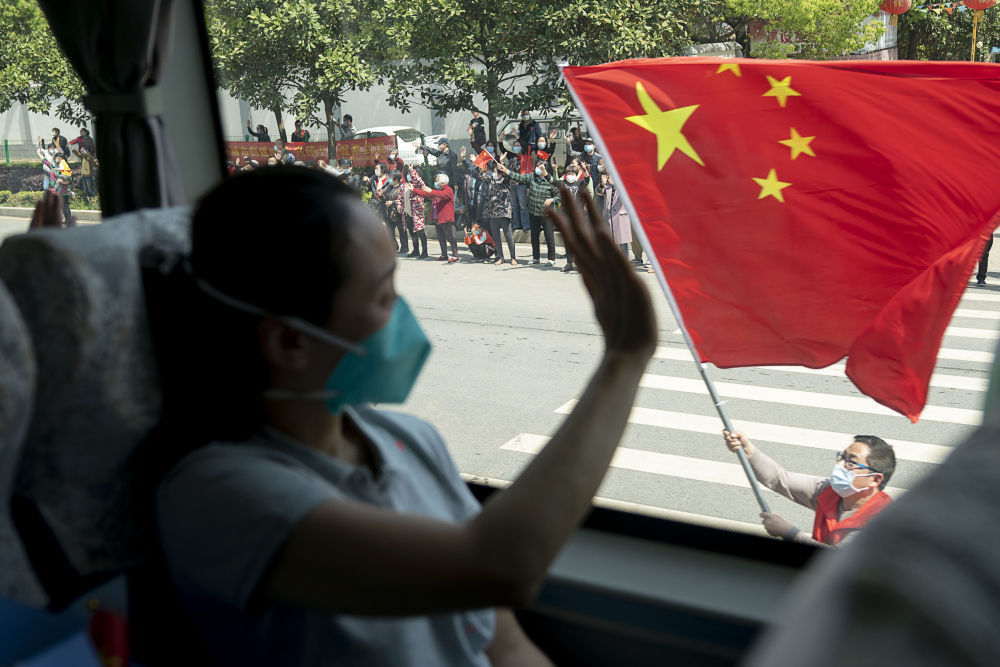4月15日,武漢市民自發上街送別北京協和醫院國家援鄂抗疫醫療隊。新華社記者 熊琦 攝