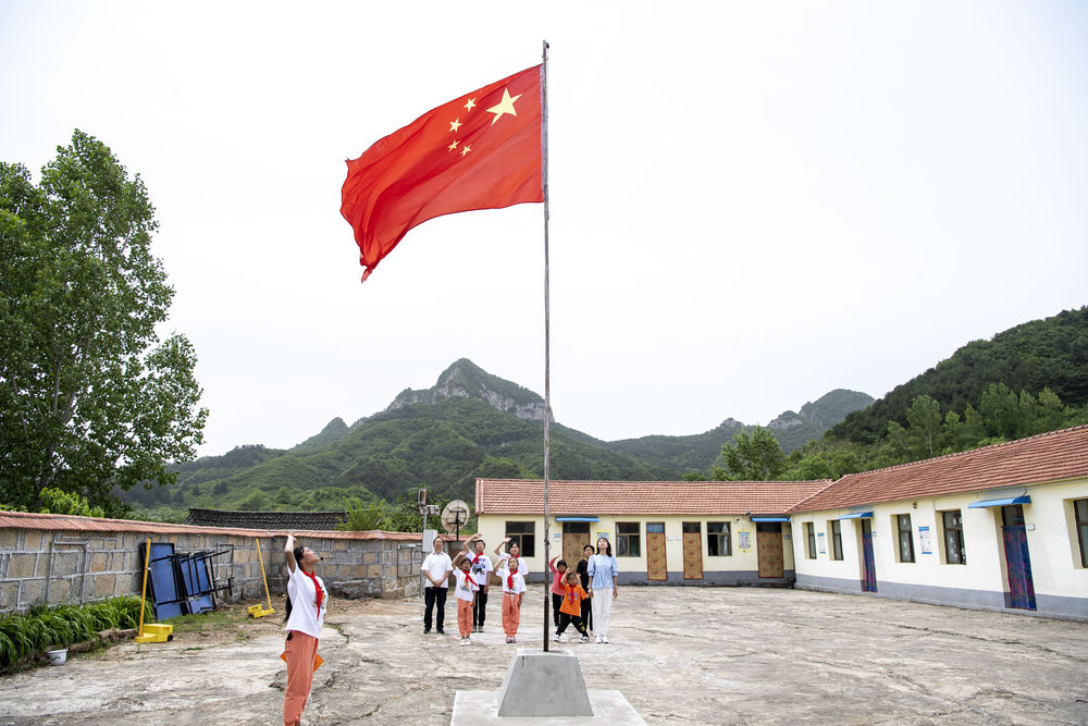 6月2日,位於山西省陵川縣古郊鄉的馬武寨寄宿制小學舉行升旗儀式。這所“麻雀小學”只有7名學生,是方圓幾十公里內唯一的學校。新華社記者 楊晨光 攝
