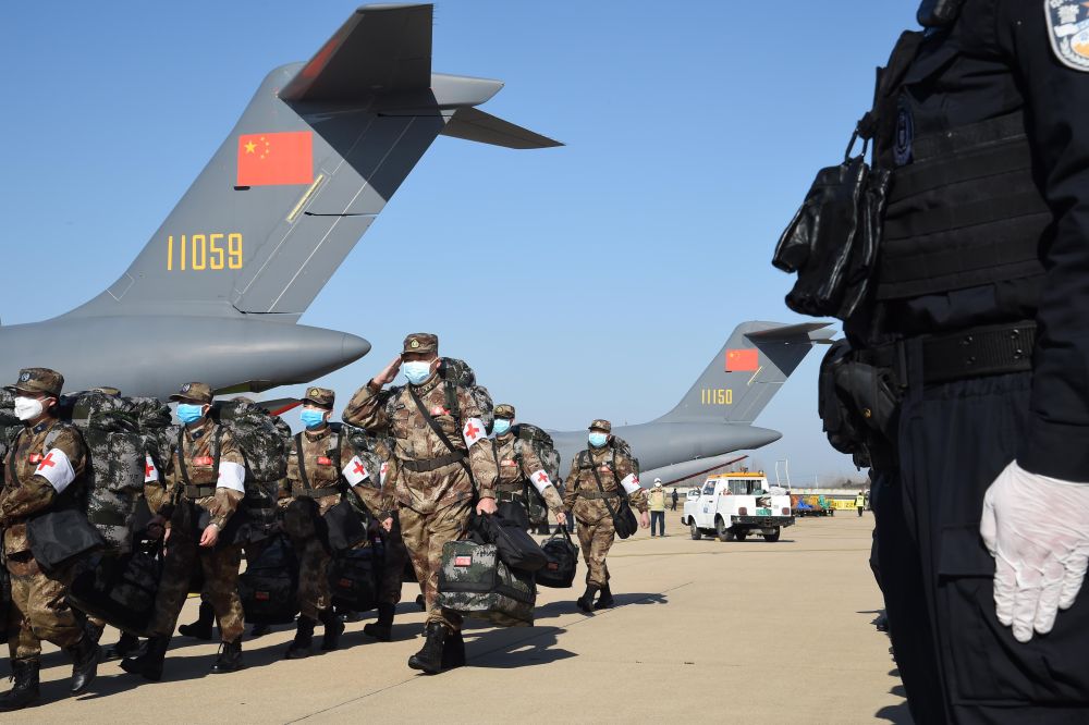 2月17日,軍隊支援湖北醫療隊員抵達武漢天河機場。新華社記者 黎雲 攝