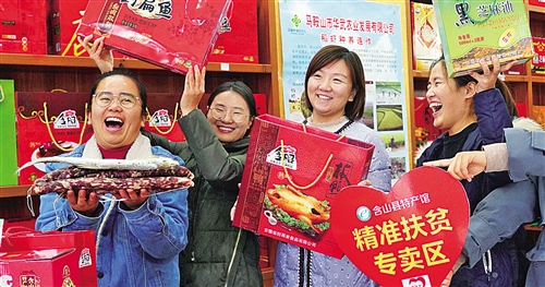 含山縣扶貧特產館,顧客在挑選農特產品。