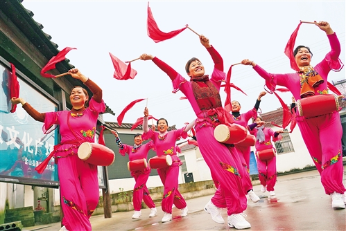 含山縣清溪鎮白馬村村民跳起歡快的舞蹈慶豐收。該縣通過產業扶貧、文化扶貧,激活了當地鄉村旅遊。
