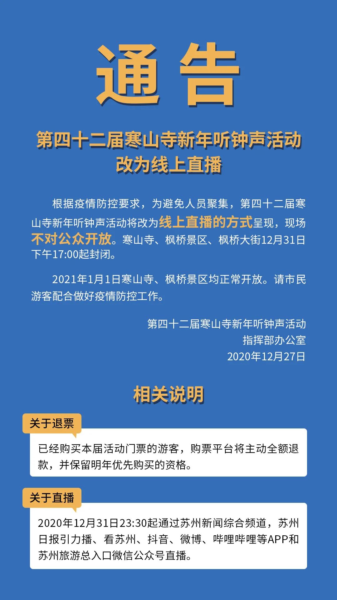 蘇州:寒山寺跨年夜現場不對公眾開放