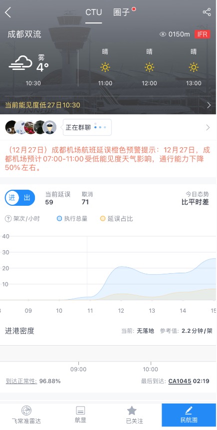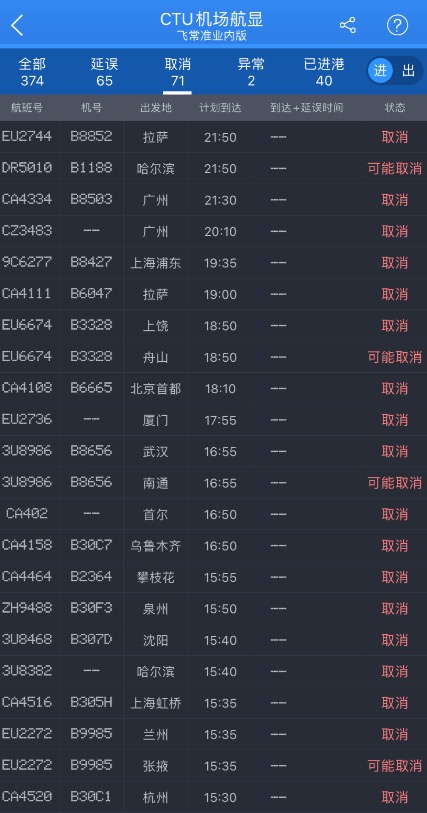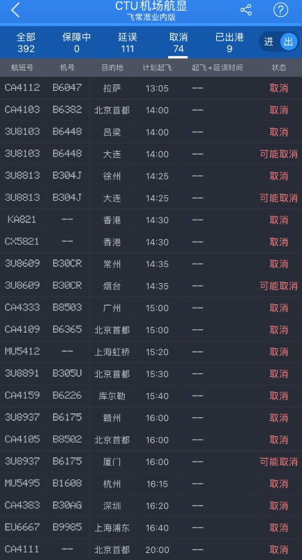 針對這一情況,雙流機場於09:00啓動大面積航班延誤黃色預案(黃色預案:即當某時刻或預計1小時候後延誤或取消航班達到50架次則啓動)。目前,雙流機場已恢復出港航班放行,但是由於之前積壓航班較多,後續航班還有可能出現延誤或取消。