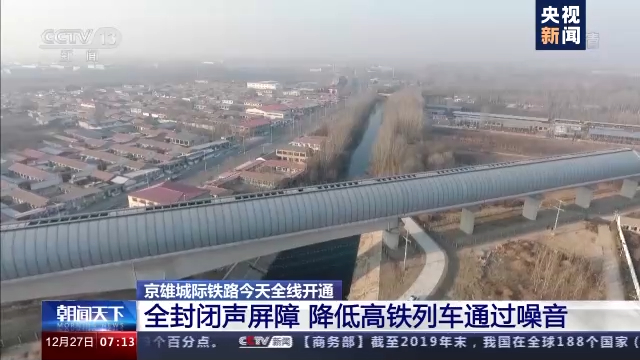京雄城際鐵路,注重智能和技術創新。在京雄城際鐵路上,有一段八百四十多米的全封閉聲屏障,解決了高鐵列車運行噪音對沿線集中居民區的影響問題。接下來就跟隨記者的鏡頭一起去了解一下。