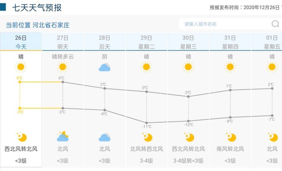 其中,29日至30日,保定、廊坊以北地區最低氣温下降11℃至16℃,其他地區下降7℃至10℃;30日早晨,最低氣温壩上地區可達-36℃至-30℃,北部地區為-29℃至-23℃,平原中南部地區為-15℃至-10℃,其他地區為-21℃至-16℃。此外,26日夜間到28日白天,平原大部分地區有輕到中度霾,局地重度霾。