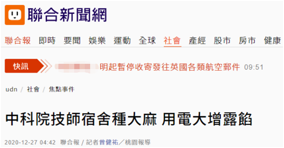 自稱工作壓力大,台灣“中科院導彈所”有人寢室種大麻,用電大增露餡
