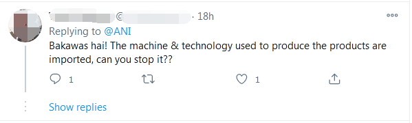 另一位網友説,“生產‘印度製造’產品的設備和技術是進口的,這你能阻止嗎?”↓