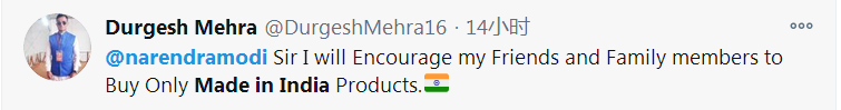還有人表態説:“先生,我會鼓勵我的朋友和家人只購買印度製造的產品。”
