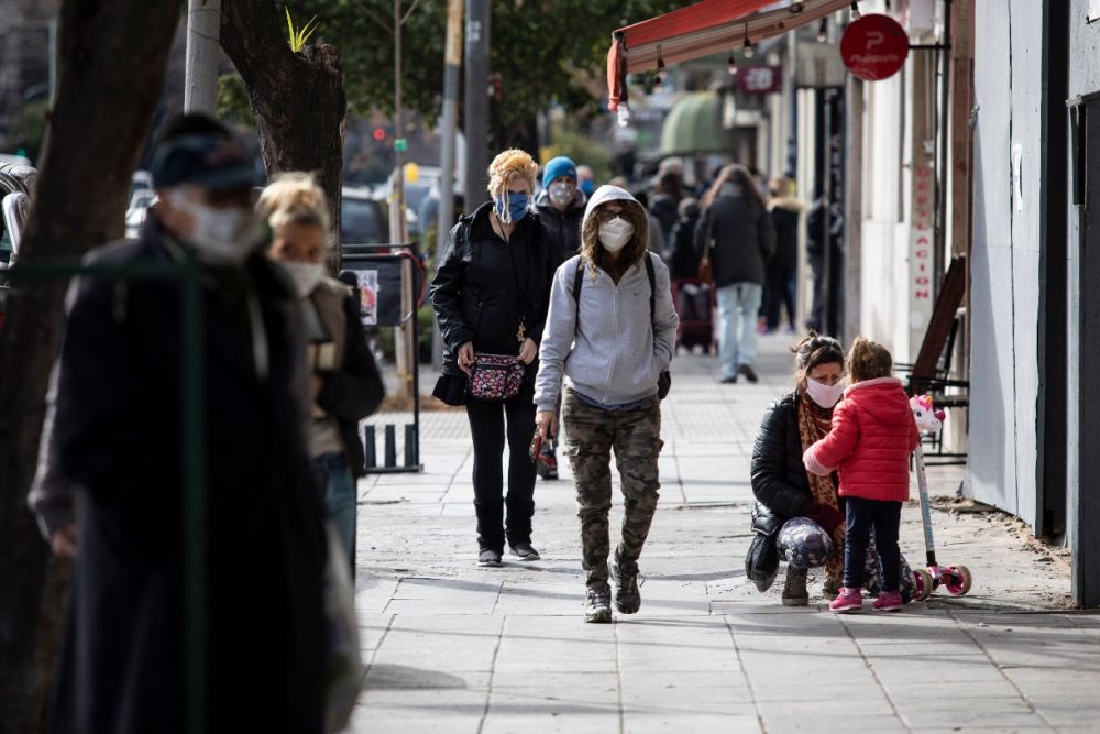 7月17日,人們戴着口罩走在阿根廷布宜諾斯艾利斯街頭。(新華社發,馬丁·薩巴拉攝)