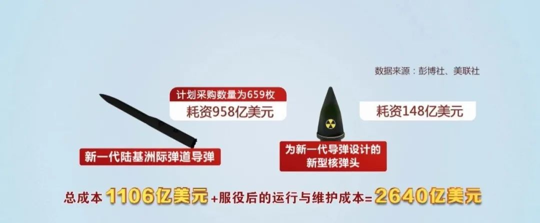 也就是説,整個項目的總成本將高達1106億美元,再算上服役後的運行與維護成本,新一代陸基洲際彈道導彈全壽命週期需耗資2640億美元。