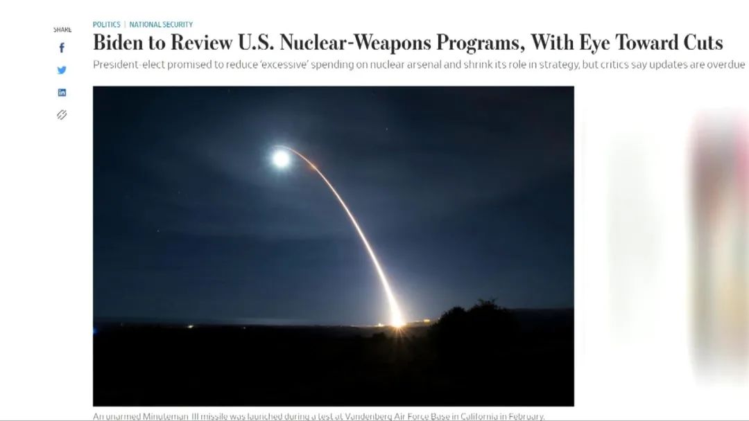 此前,拜登在競選期間曾明確表示,將減少美國在核武器方面的“過度支出”,並批評現任總統特朗普研發新型核武器的決定。