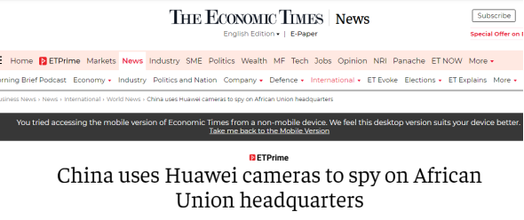 危言聳聽!美媒又抹黑“中國利用華為攝像頭監控非盟”,網友直接懟:假新聞!可信度為零!