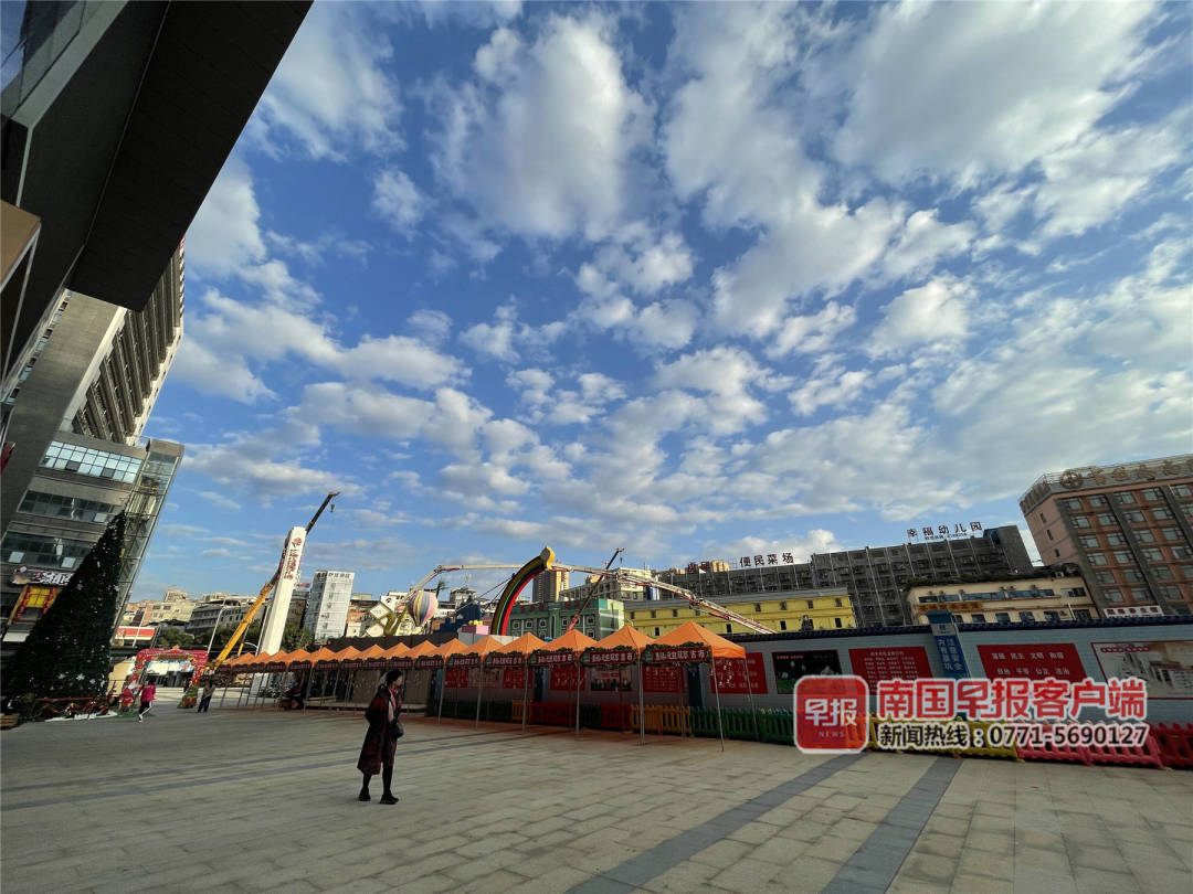 ▲12月28日下午5時,南寧市白雲佈滿藍天,市民在明秀東路一帶走過。南國早報記者鄒財麟攝