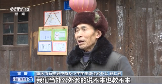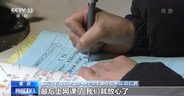 重慶市石柱縣中益鄉小學學生譚佳宏外公 花仁君: 我們當外公外婆的説不來也教不來,他媽在外打工,後來開始上網課後,我們也就放心了。