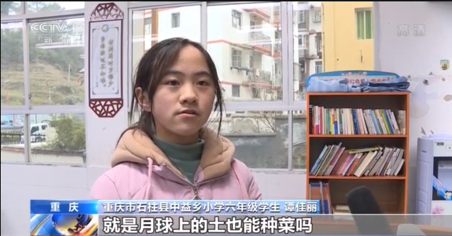 重慶市石柱縣中益鄉小學六年級學生 譚佳麗: 我一直有個問題,就是月球上的土也能種菜嗎?我在今天的課上找到了答案。