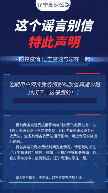 遼寧疫情備受關注,不僅汽車客運站,連遼寧高速也被曲解生事的造謠者盯上了。