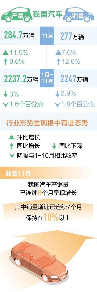 “今年車市跌宕起伏。”中國汽車工業協會副秘書長葉盛基説,2月份行業內曾預測全年汽車產銷下滑幅度可能會超過25%,實際上,1—11月累計產銷量分別為2237.2萬輛和2247萬輛,同比下降3%和2.9%,降幅均比上半年收窄14個百分點左右。