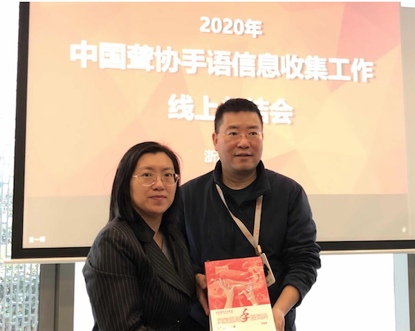 在簽約現場,楊洋代表中國聾協向釘釘捐贈了華夏出版社出版的《國家通用手語詞典》,希望釘釘的會議系統能加配即時字幕,更加便利聽障人士使用。
