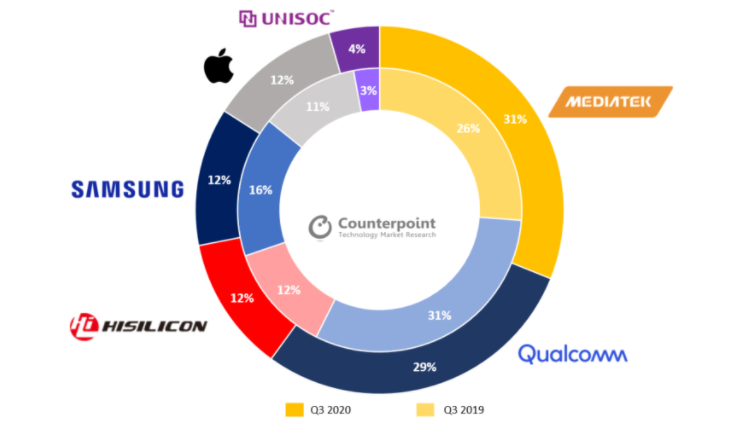 2020年Q3智能手機芯片市場報告出爐 聯發科份額最高