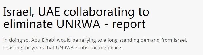 據外媒報道,以色列和阿聯酋目前正在商討,在不解決巴勒斯坦難民問題的情況下,關停聯合國近東巴勒斯坦難民救濟和工程處(UNRWA)。報道稱,自以阿兩國在美國撮合下實現關係正常化以來,在以色列的堅持下,雙方一直在籌劃關停UNRWA事宜。