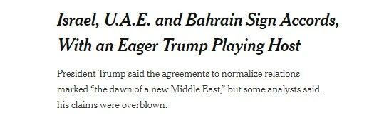 △《紐約時報》:“着急”的特朗普主持以色列、阿聯酋和巴林三國簽署關係正常化協議。
