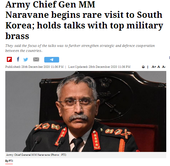 炒作不停!印度陸軍參謀長首訪韓國,印媒卻“硬扯”中國