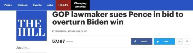 特朗普翻盤最後稻草?共和黨人起訴副總統彭斯
