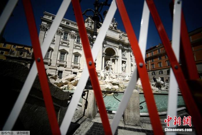 資料圖:羅馬市中心特萊維噴泉前的一道封鎖柵欄。