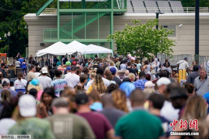 當地時間6月17日,美國肯塔基州國會大樓外,上千名在疫情期間失業的美國民眾排隊等候進入大樓。