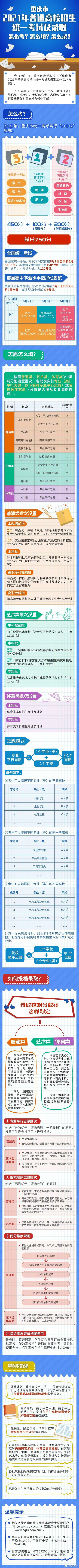 據介紹,2021年重慶市普通高考實行“3+1+2”模式,“3”指全國統一考試語文、數學、外語(含聽力)3科;“1”指普通高中學業水平選擇性考試首選科目1科;“2”指普通高中學業水平選擇性考試再選科目2科。在普通高中學業水平選擇性考試中,物理、歷史為首選科目,考生只能且必須選擇其中1科報考;思想政治、地理、化學、生物學4科為再選科目,考生只能且必須選擇其中2科報考。其中,全國統一考試科目語文、數學、外語的分值均為150分,總分450分;學業水平選擇性考試每科原始分值均為100分,首選科目成績以原始分計入總成績、再選科目成績以等級轉換分(每科滿分仍為100分)計入總成績,總分300分。