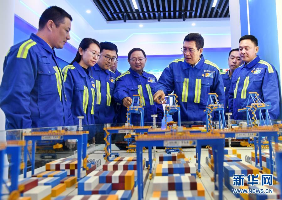 12月27日,“連鋼創新團隊”成員在青島港自動化碼頭一線調研。新華社記者 李紫恆 攝