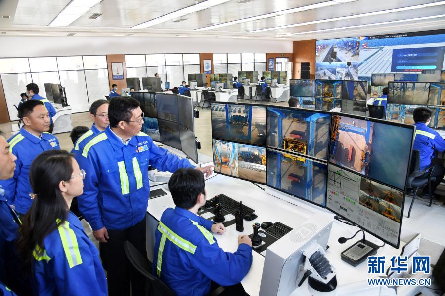“連鋼創新團隊”成員在山東港口青島港自動化碼頭上(3月28日攝)。新華社發