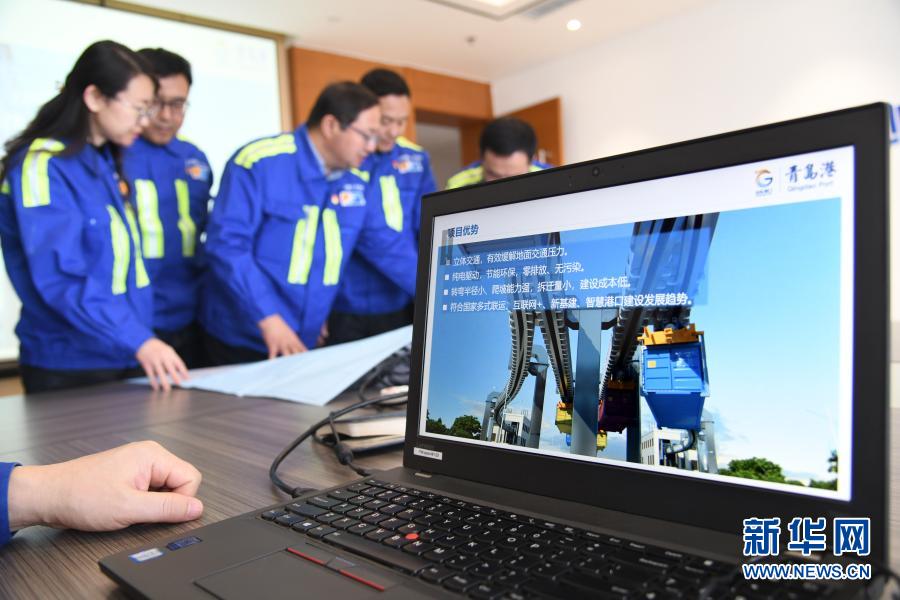 12月27日,“連鋼創新團隊”成員在討論由山東港口青島港全球首創的集裝箱智能空軌集疏運系統方案。新華社記者 李紫恆 攝