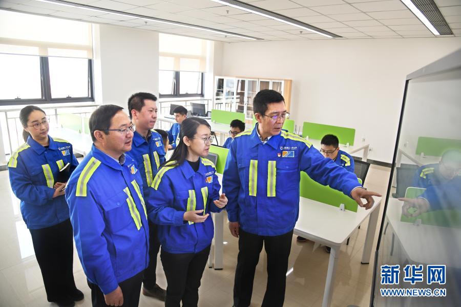 12月27日,張連鋼(前右一)圍繞新系統研發課題與信息技術人員一起研究優化方案。新華社記者 李紫恆 攝