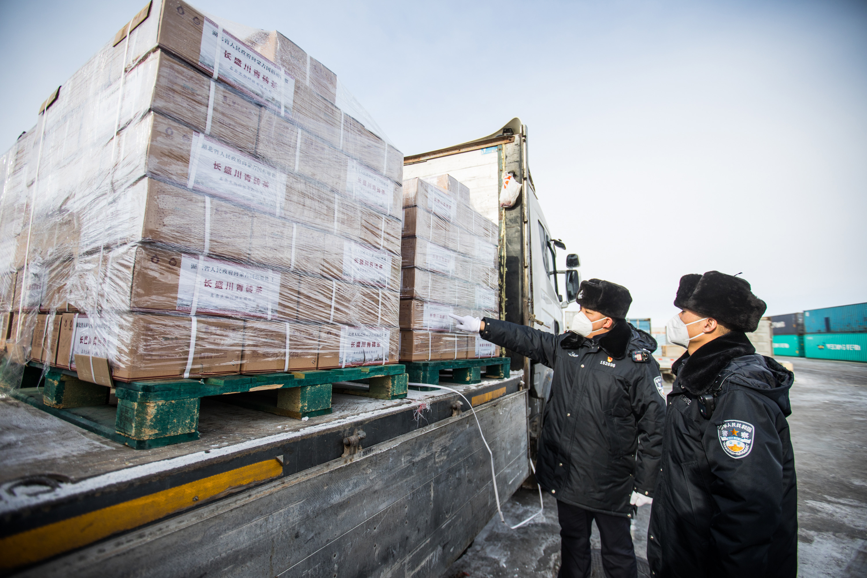 二連出入境邊防檢查站為確保捐贈物資第一時間快速通關,專門開通“防疫物資專用通道”,對載運物資車輛,安排專人專崗進行驗放,確保通關“零等待”,查驗“零延時”,全力確保各類防疫物資安全、高效通關。
