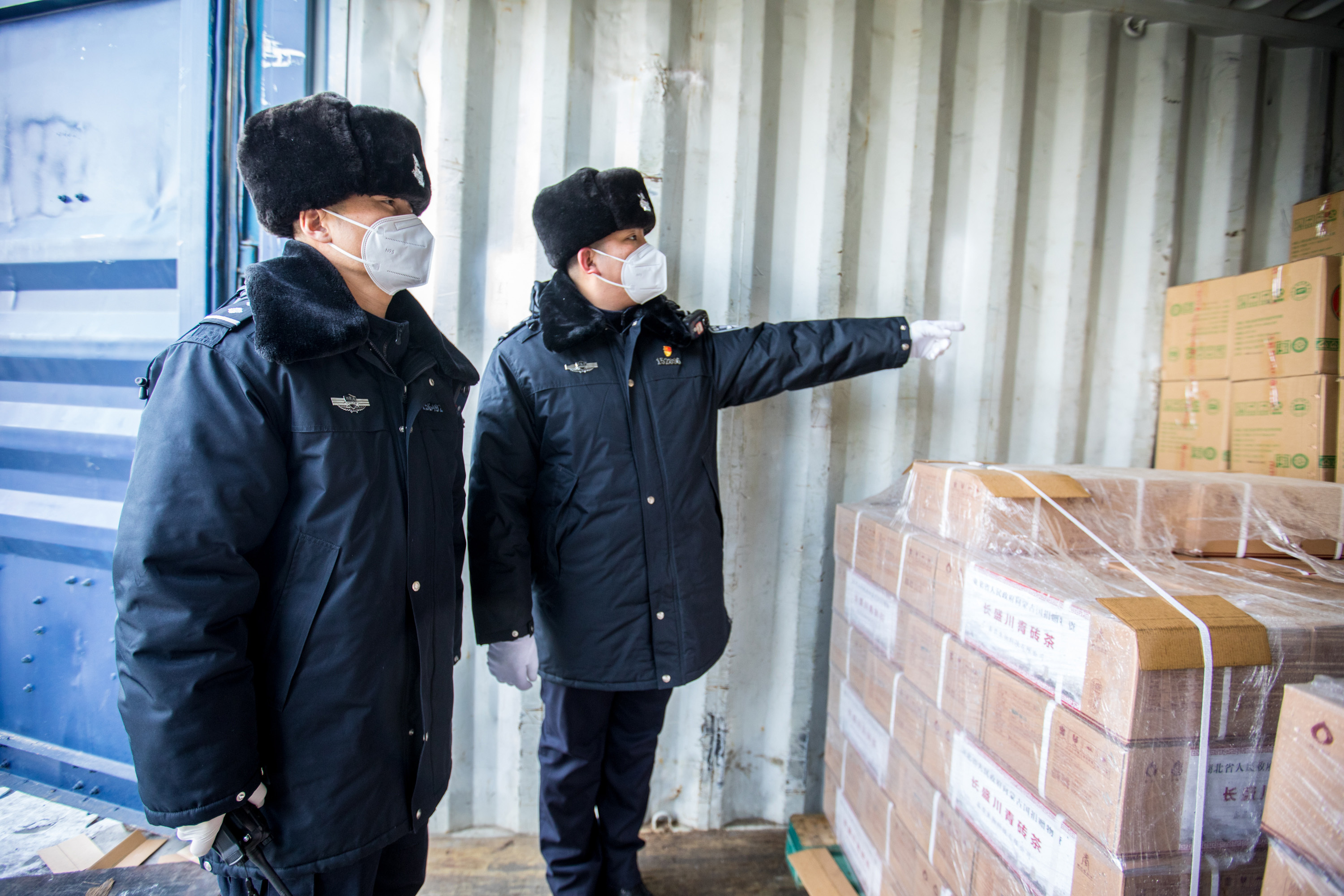 12月28日,湖北省捐贈蒙古國的茶葉從內蒙古自治區二連浩特公路口岸出境。內蒙古出入境邊防檢查總站二連出入境邊防檢查站開通“專用通道”為運送茶葉車輛提供優質、高效的通關服務。