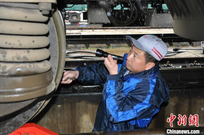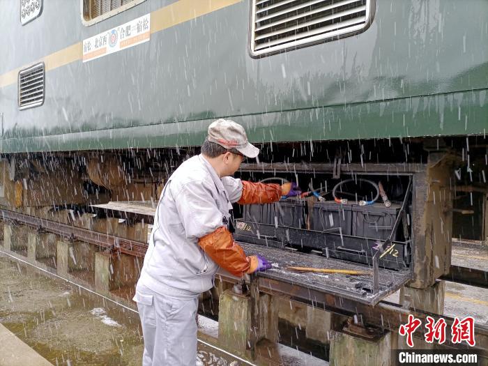 中國鐵路上海局集團公司合肥車輛段員工在對列車進行檢查。中國鐵路上海局集團公司合肥車輛段供圖