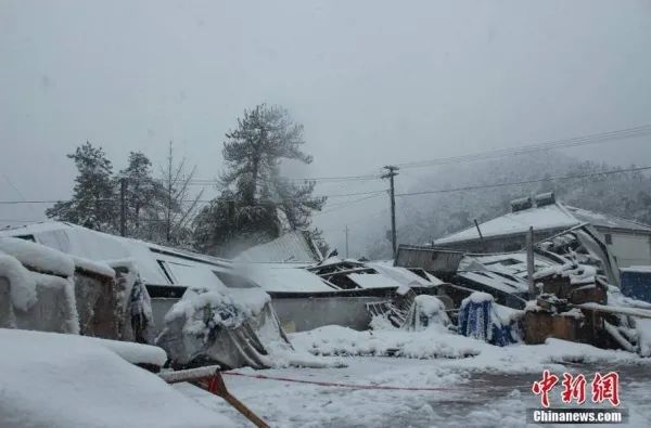 2016年1月22日,浙江安吉孝豐鎮一家木製品廠房被雪壓塌。圖片來源:中新網