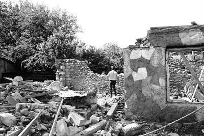 這是9月29日在阿塞拜疆臨近納卡邊境的塔塔爾地區拍攝的在衝突中受損的房屋。新華社發